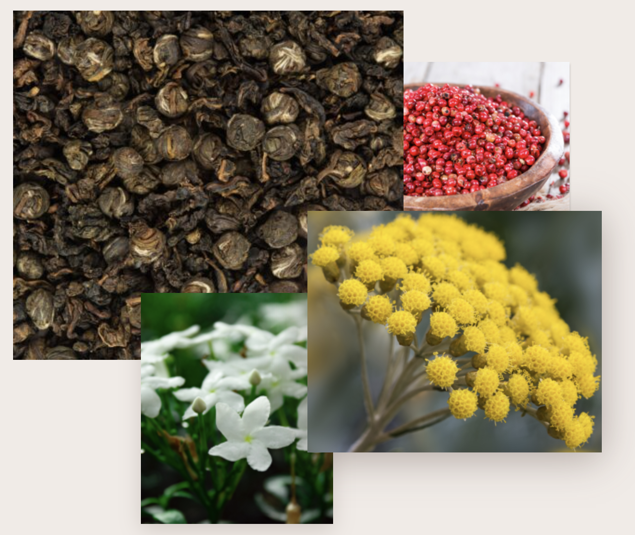 The subtle intensity of Japanese Gyokuro tea reminiscent of both algae and iodine, its complex composition and fierce tone push us to return to smell more. The presence of Gaïac wood emphasizes the composition.